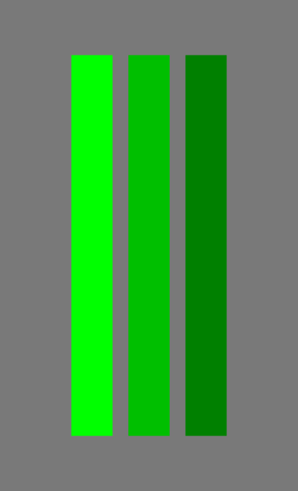 Once again, I highly encourage you to muck about in your favourite DCC application to hammer the ideas home. Set your colour to something like [0.0, 1.0, 0.0], [0.0, 0.75, 0.0], and another to [0.0, 0.5, 0.0]. Do the three greenish looking colours appear to change colour?
