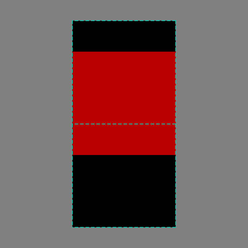 We know our geometry is conveniently based on the 100 unit divisions, and we’ve moved the pixel down 30% into the destination, or three rows. We also know the emission strength of our starting red pixel of 50%. We have enough information to manually calculate the proper result for our mixing.