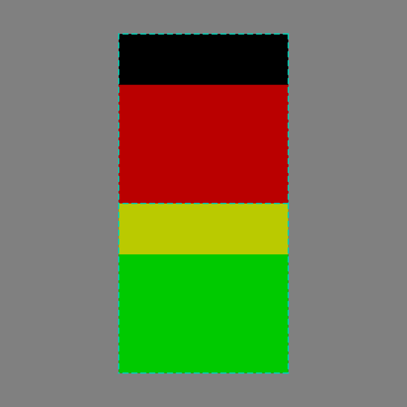 First the mixed yellow portion. We can see that it is covering 30% of the pixel window where the red and green emissions overlap, and our emission was originally 50% red.