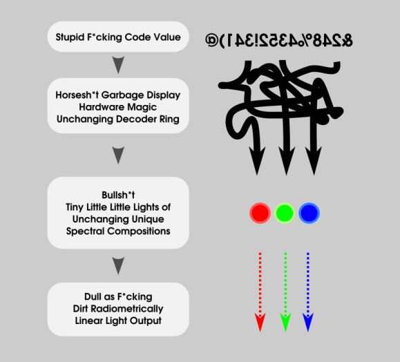 To recap, let’s peek at their respective code values1 and the related display-referred emission strengths.