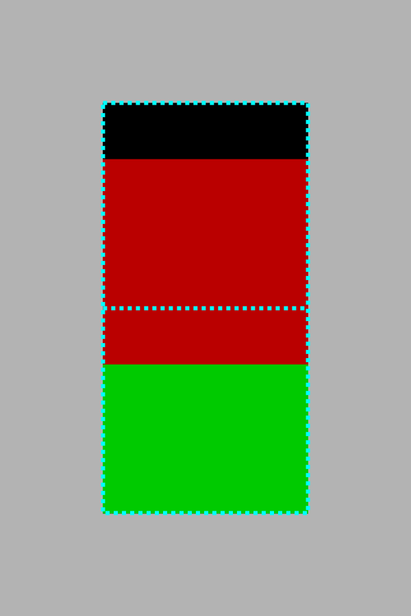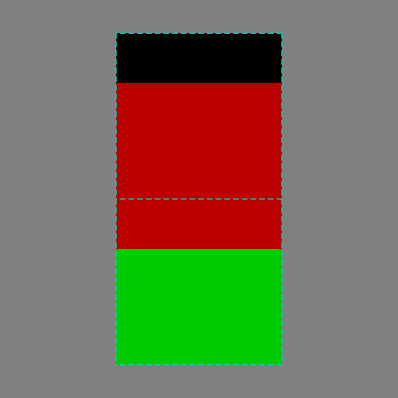 Let’s visualize the lower window with Sister Green at her 60% emission, with her window’s subpixels of emission “turned off” as though they were fully occluded or blocked individually by Brother Red’s geometry.