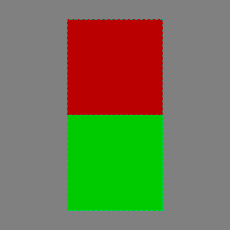 FIGURE RED OVER GREEN Here Brother Red is both emitting at 50% sRGB red intensity and fully occluding the small 30 unit portion of Sister Green’s window.