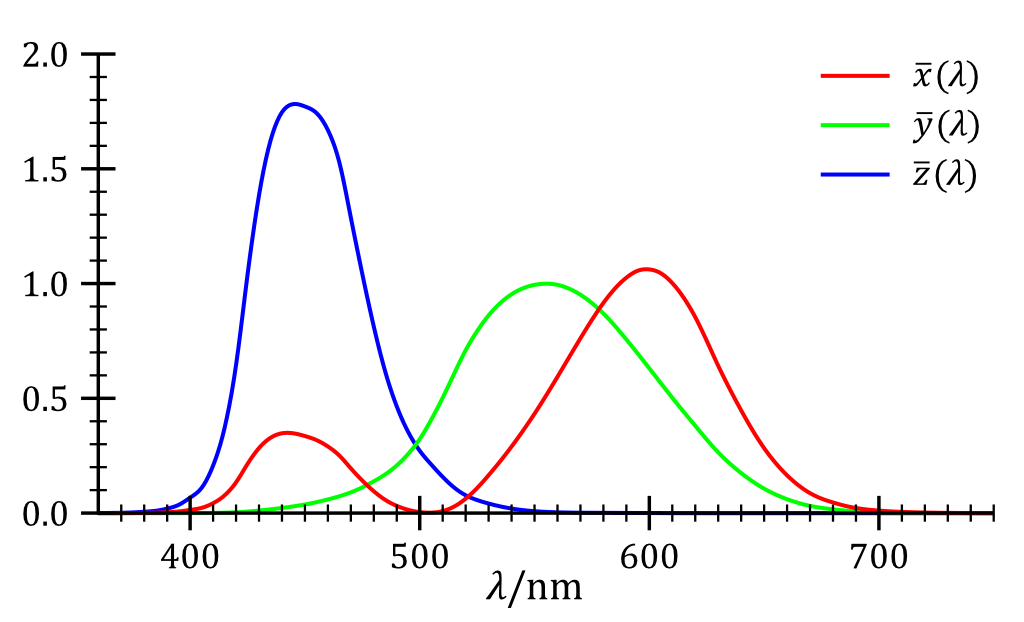 With a rigid function, albeit of questionable veracity, in place, we have a binding metric scale between stimuli wattage and one of the “dimensions” of neurophysiological response. Fast forward to 1931, when the CIE ratifies the CIE XYZ model based on top of the CIE 1924 luminous efficacy function7.