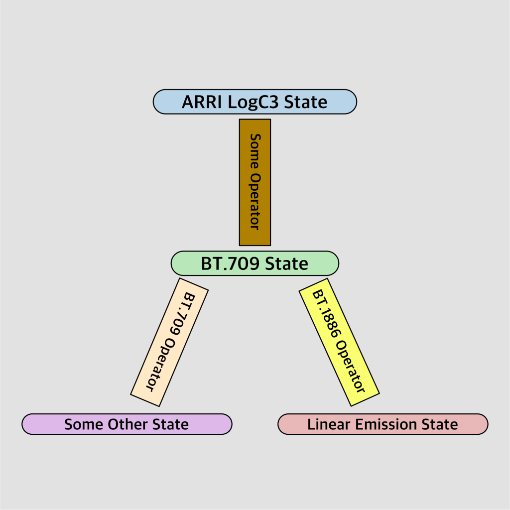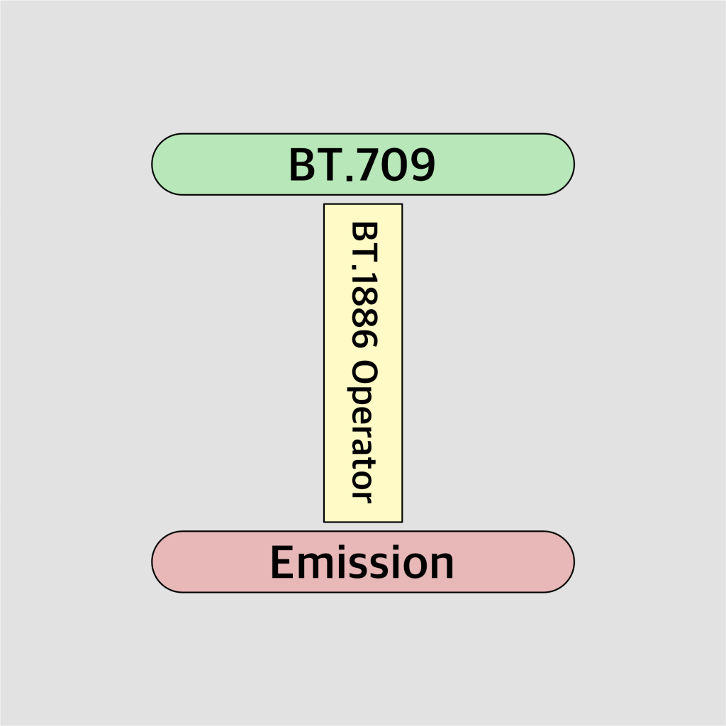 Note that all that matters in this diagram is the outgoing emission. The encoding origin state is subservient to the way we treat it via the operator, which in this case, is the BT.1886 decoding function. The rest is absolutely irrelevant.